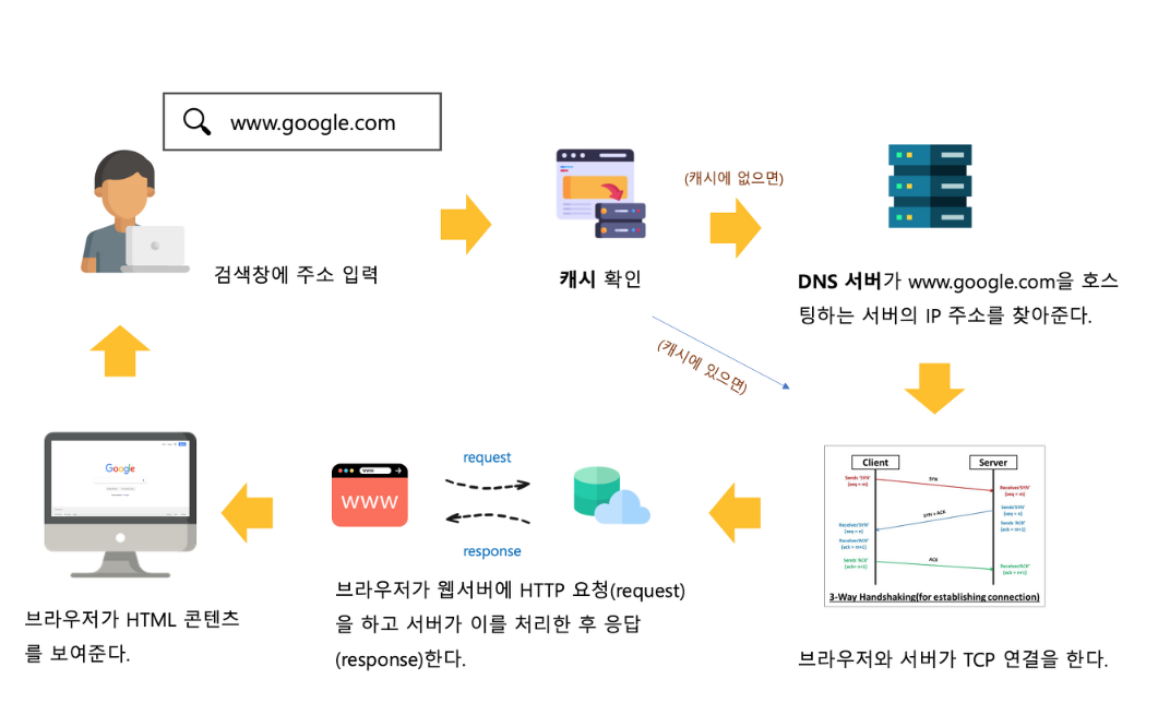 주소창에 `google.com`을 입력했을 때 일어나는 과정을 단계별로 알아보자!